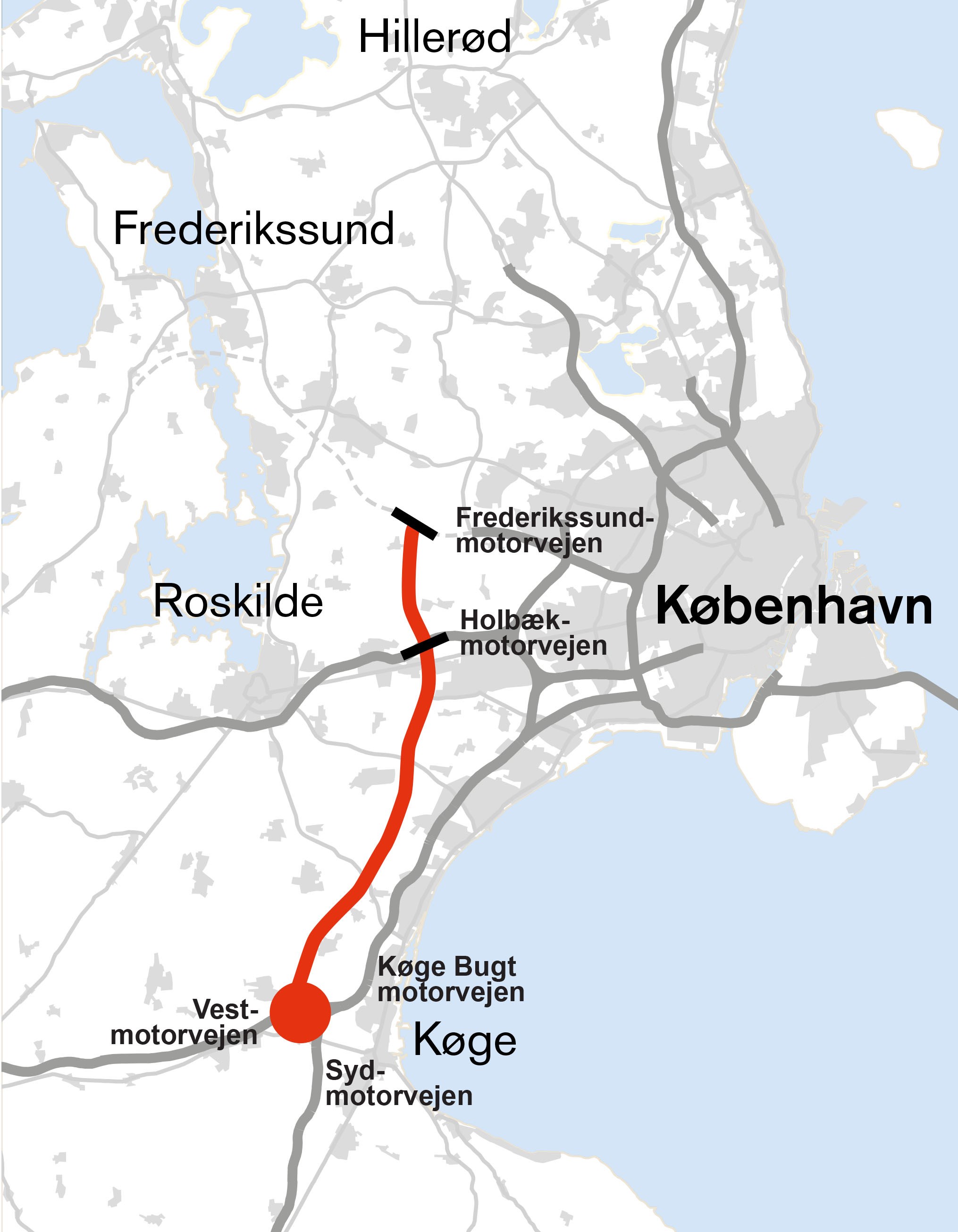 - Biltrafikken på Sjælland stiger kraftigt i disse år, og det koster samfundet rigtig mange penge, når vi spilder tiden på at holde i kø. Vores undersøgelser viser, at det på sigt ikke vil være nok at udvide de eksisterende motorveje i ringforbindelserne for at afhjælpe det pres, der er på vejene. Derfor vil vi nu undersøge mulighederne for at lave en ny motorvej, der kan lede noget af trafikken uden om København, siger transport-, bygnings- og boligminister Ole Birk Olesen.