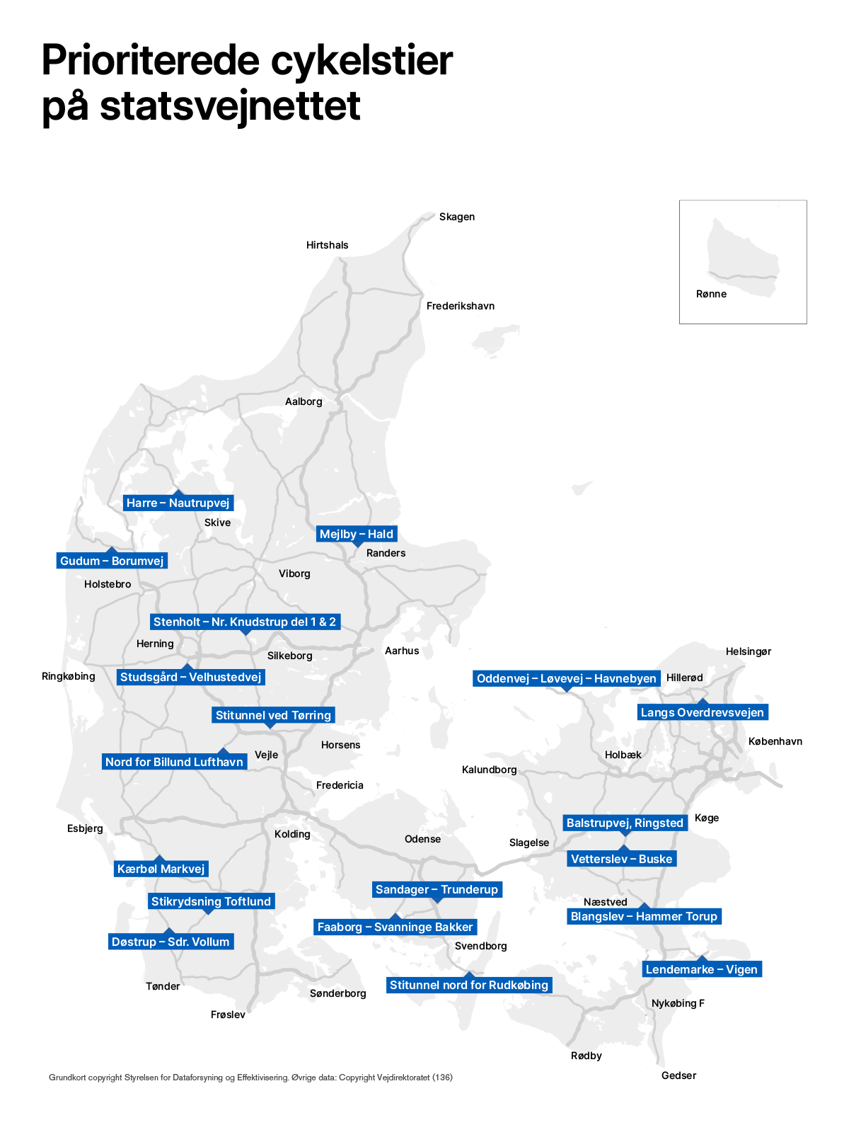 I december blev der i Aftale om grøn omstilling af vejtransporten afsat 370 millioner kroner til cykelstier langs statsveje og 150 millioner kroner til medfinansiering af cykelprojekter ved kommunale veje. Aftalepartierne er nu enige om at udmønte midler til 20 konkrete cykelprojekter på statsvejene samt at igangsætte puljen til kommunale projekter.