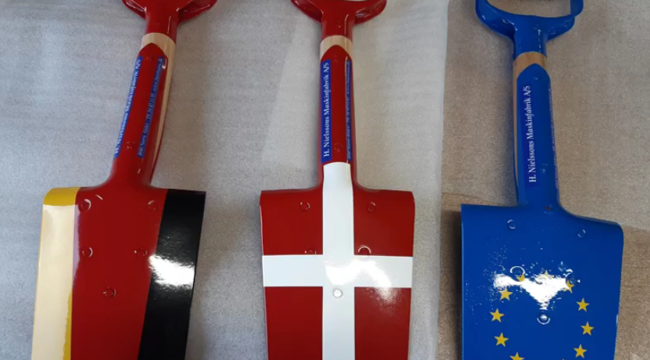 Transportminister Benny Engelbrecht og transportministeren i Slesvig-Holsten tog første spadestik på tysk side.